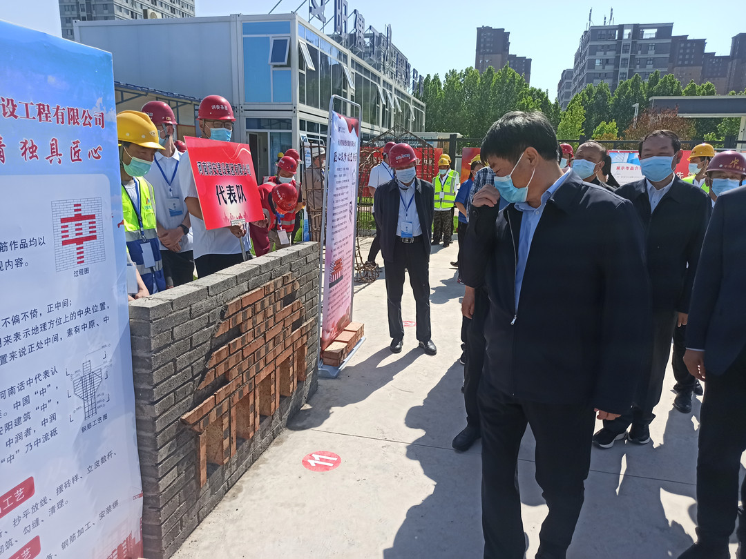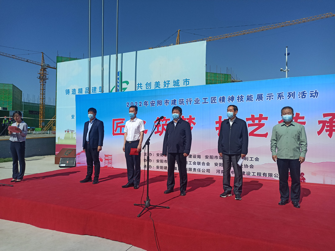 5月16日,由安陽市住建局、安陽市城建交通水利工會共同舉辦的“匠心筑夢 技藝傳承”2022年度安陽市建筑行業(yè)工匠技能展示活動在安陽師范學院教學實驗綜合樓項目工地舉行。集團公司常務副總楊金貴、副總經(jīng)理王福民、王超帶隊參加了活動。
